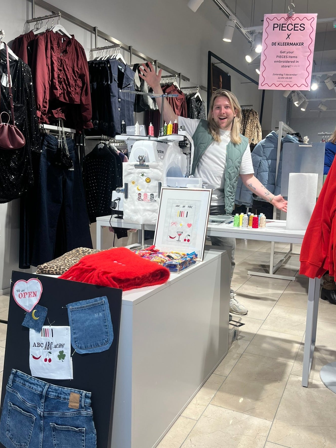 Onlangs stond ik met mijn borduurmachine bij Pieces in de Herestraat in Groningen.